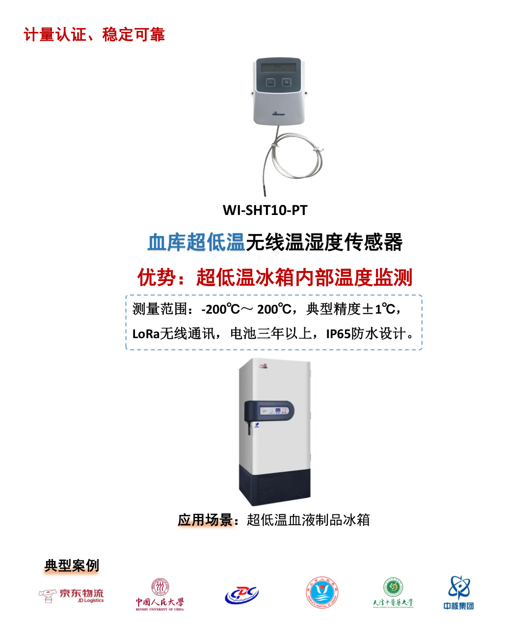 WI-SHT10系列LoRa无线温湿度传感器是厦门团毅技术有限公司研发的智能通信终端系列。它涵盖了从仓储冷链、混凝土标养到医疗超低温冰箱等多种场景,可以精确测量环境的温湿度变化。具有低功耗、长续航(电池三年以上)、LoRa远距离无线传输以及IP65防水等核心优势。